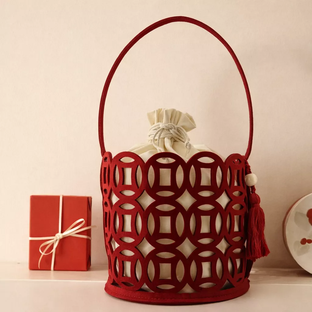 外袋:中式鏤空毛氈手提籃